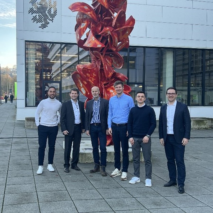 Gruppenbild mit den Gastreferenten (Namensnennung von links nach rechts): Aykan Aktepe (Vaillant), Nils Crasselt (Lehrstuhl für Controlling), Gerald Bremer (Vaillant), Tobias Heiermann (Vaillant, Absolvent der Schumpeter School), Marlon Brentzek (Vaillant, Absolvent der Schumpeter School), Eike Oenschläger (Lehrstuhl für Controlling)